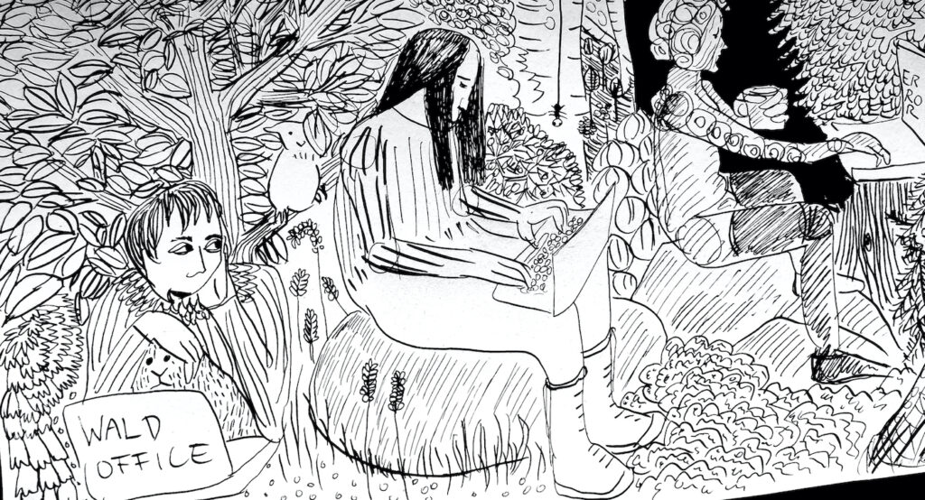 Der Wald als offenes und für Störungen anfälliges System. Der Wald als geistiger und künstlerischer Nährboden, als geschichtlicher Erzähl-Raum und als ein Sehnsuchtsort. Fünf Künstlerinnen und ihre Kinder leben gemeinsam zehn Tage lang in Raabs an der Thaya, suchen das Gespräch mit den Menschen in Raabs und nähern sich dem breiten Thema „Wald“ an. Mit fünf unterschiedlichen Herangehensweisen und künstlerischen Perspektiven nehmen die Künstlerinnen, die in dieser Zeit ein Geschäftslokal im Zentrum von Raabs mit neuem Leben füllen, als „Waldfünftel“ die Herausforderung der offenen Zusammenarbeit an. Im Geschäftslokal der Familie Stallecker, das die Familie den Künstlerinnen für die Ausstellungsdauer freundlicherweise zur Verfügung stellt, werden die entstandenen Werke sowie bestehende Arbeiten der Künstlerinnen zum Thema Wald ausgestellt.