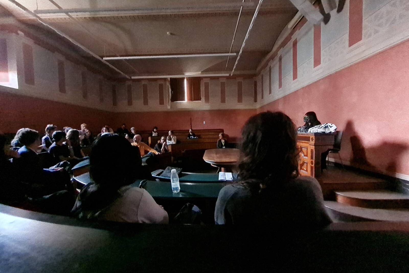 Alida Sun’s work strongly speaks to the topics in my project and questions we discuss here at the Academy of Fine Arts Vienna. So I felt extremely honored that she was with us, at the Anatomy hall. We had the chance to have a Q&A with her afer her lecture. Alida Sun is based in Berlin at the moment, but has international art exhibitions, like for example a large solo show in New Delhi. Alida Sun builds audio-visual instruments that transform her movements into visuals and sounds. With a background in coding and tech culture she enjoys coding as a physical process to create art. This way coding turns into a physical ritual. It reminds us of the times when art was tangible, hardwired into craft. When iteration was necessary for crafting and was an embodied experience. When Alida Sun thinks highly appreciated forms of self expression in patriarchal society, like tech production, with highly undervalued forms of self expression, like textile manufacturing by women weavers in India, she outlines women’s invisible and underpaid labour. I want to quote Alida Sun: